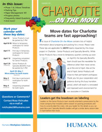 Touch Points wins Silver Award in the 2012 Aster Awards Touch Points won a Silver Award in the 2012 Aster Awards competition honoring excellence in medical marketing. The "Charlotte On the Move" newsletters created for Humana's workplace transition project in Charlotte were entered in the Newsletter category. The newsletters were designed for maximum readability to keep associates informed about the important dates and activities of the workplace renovation and transition project. |
